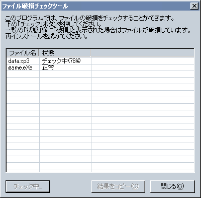 Note: ファイル破損チェックツールは、ファイルの破損は検出できますが、「ファイルが存在しない」という状態は、それ自体では検出できません。