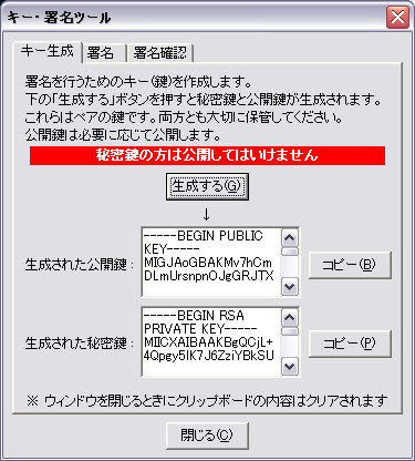 キー・署名ツールは、配布するデータに対し、簡単な電子署名を行うためのツールです。